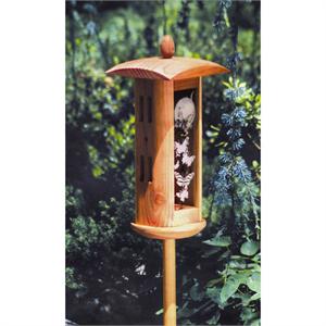 With a dramatic overhaning roof and etched glass, this butterfly house is a gorgeous to any garden! Features slots for butterflies to enter and exit and for ventilation. The top lifts off for easy cleaning. This item proudly made in the U.S.A.