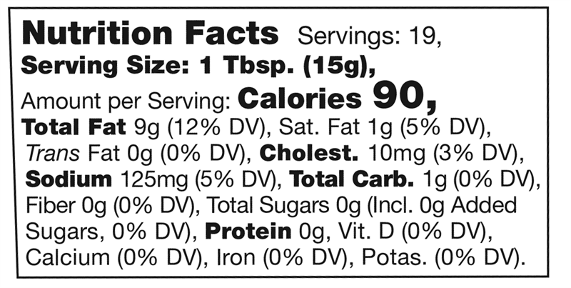 Ingredients: Canola Oil, Salted Eggs (whole eggs, salt), Roasted Garlic, Garlic Oil (sunflower oil, olive oil, garlic), White Vinegar, Mustard Powder, Salt, Water, Natural Flavor and Tocopherols (natural antioxidant)
