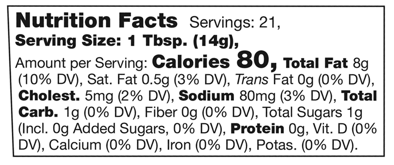 Ingredients: Canola Oil, Salted Eggs (whole eggs, salt), Sriracha Sauce (red chili peppers, vinegar, garlic, sugar, salt), Garlic, White Vinegar, Roasted Red Peppers (peppers, water, salt, citric acid, calcium chloride), Pure Cane Sugar, Water, Mustard Powder, Habanero Oil (sunflower oil, olive oil, habanero peppers), Garlic Powder, Natural Flavor and Tocopherols [natural antioxidant], Gum Acacia, Xanthan gum