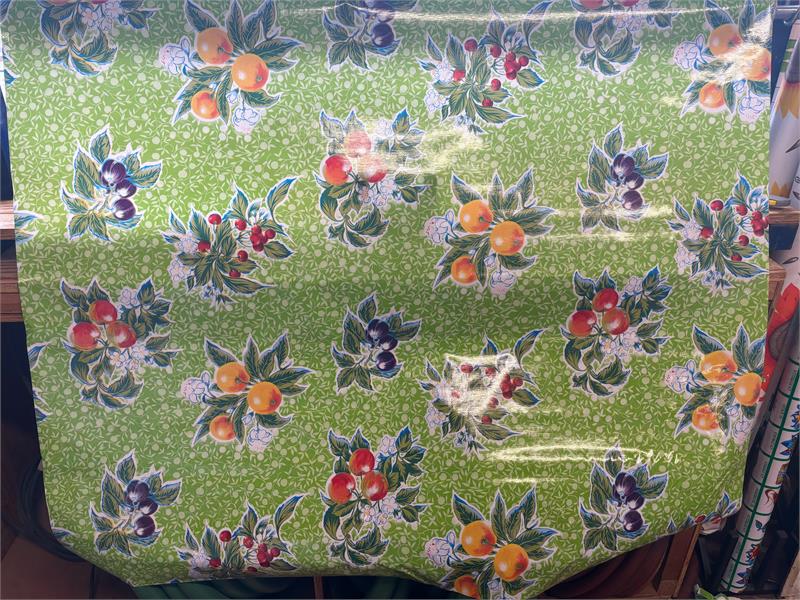 Summer Fruit on Lime Green Oil Cloth, Full BoltOilcloth has been around for over a century and when it comes to making a bold color statement anywhere in your home. Oilcloth is a long-lasting, sturdy product that comes in vibrant colors. The oilcloth of yesteryear was resin-coated vinyl and the finish sometimes cracked or flaked. The new version is made of hi-tech plastic that won't crack but has the same colorful shine. Oilcloth has a mesh backing, which means it can really hold a stitch. It can be used for anything that needs to be durable and colorful--tablecloths, upholstered dining room chairs, curtains, bibs, lampshades, tissue boxes, outdoor chairs, etc. Your only limited by your imagination! Oil Cloth measures 48" wide & a full bolt equals 12 continuous yards (36 feet) Don't see the pattern or color you want? Please let us know and we will order it for you!