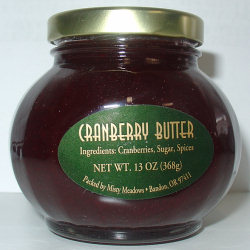 We specially prepare the Cranberries to makethem smooth and spreadable. The same greatcolor and tart flavor are still in there. Use thison bread to complement a turkey sandwich(no fat alternative to mayo). 13 ounce jar.