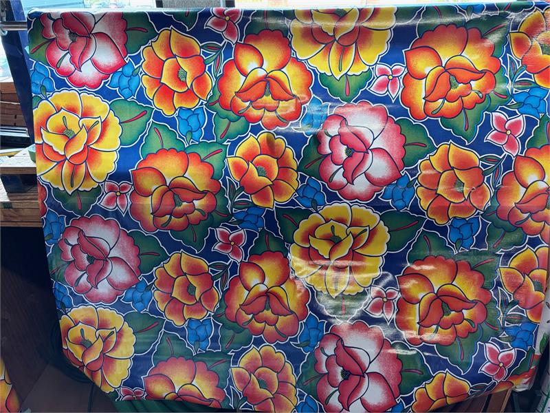 Tehuana on Navy Oil Cloth, YardageOilcloth has been around for over a century and when it comes to making a bold color statement anywhere in your home. Oilcloth is a long-lasting, sturdy product that comes in vibrant colors. The oilcloth of yesteryear was resin-coated vinyl and the finish sometimes cracked or flaked. The new version is made of hi-tech plastic that won't crack but has the same colorful shine. Oilcloth has a mesh backing, which means it can really hold a stitch. It can be used for anything that needs to be durable and colorful--tablecloths, upholstered dining room chairs, curtains, bibs, lampshades, tissue boxes, outdoor chairs, etc. Your only limited by your imagination! Oil Cloth measures 48" wide & a full bolt equals 12 continuous yards (36 feet) Don't see the pattern or color you want? Please let us know and we will order it for you!