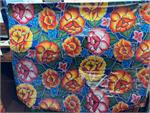 Tehuana on Black Oil Cloth. Sold by the Yard. Oilcloth yardage in a gorgeous design made famous by the embroidered costumes of the native people from Tehuantepec, Mexico. A stunning and bold pattern that has the distinction and poise of Frida Kahlo.