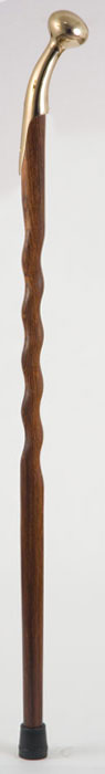Central American cocobolo has a color range of dark to light brown with a tight grain pattern and beautiful stripes and swirls throughout its length. Coupled with a stately brass hame the Twisted Cocobolo Hame Top Walking Cane is an ideal walking companion that's both beautiful and highly functional. Each walking cane is made from the finest cocobolo that is carefully selected, cut, worked on a router, sanded, and sprayed with a protective clear coat lacquer to magnify the woods innate beauty. Each shaft is given our signature twist that spirals majestically down its length. The cane -- available in a standard 37-inch size, or a larger 40-inch size. Each cane comes with a standard rubber ferrule for a firm, secure grip on virtually any surface. Like all of our staffs and canes, this walking cane is handcrafted in the USA using the highest quality wood and time-tested methods. Proudly Made in the U.S.A.