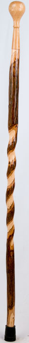 The Twisted Hickory Turned Knob Walking Cane is a stately beauty that is meticulously fashioned from solid hickory. Its solid construction, coupled with its easy-to-hold turned knob, make it a useful and attractive walking aid. Each Twisted Hickory Turned Knob Walking cane is made from the finest hickory that is carefully selected, cut, worked on a router, sanded, stained, and sprayed with a protective clear coat lacquer to magnify the woods innate beauty. Spiraling down its shaft is our signature twist, giving it majestic appeal that makes this cane both elegant and useful. For a firm and secure fit, the knob handle is permanently affixed to the shaft using a combination of epoxy and a dowel rod. The cane -- available in a standard 37-inch size, or a larger 40-inch size. Each cane comes with a standard rubber ferrule for a firm, secure grip on virtually any surface. Like all of our staffs and canes, the Twisted Hickory Turned Knob Walking Cane is handcrafted in the USA using the highest quality wood and time-tested methods. Proudly Made in the U.S.A.
