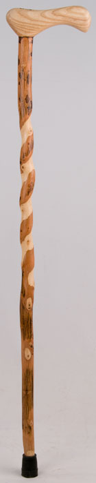 Twisted Hickory Walking Cane -- With our beautiful trademark twist spiraling down its shaft, our Twisted Hickory Walking Cane is altogether functional and elegant. With its rustic beauty complimented by its majestic twist, this cane is the ideal companion for nearly any occasion. Hickorys strength and flexibility -- traditionally used for making firm tool handles -- make this a choice cane for those seeking a strong, sturdy walking aid. The handle on the Twisted Hickory Walking Cane is fashioned from ash; like most of our handcrafted walking cane handles, it is attached to the shaft with a mortise and tenon joint for a strong, secure fit. This cane comes in a 37-inch size, but is also available in a larger 40-inch size. Each cane also comes with a rubber ferrule for a secure grip on virtually any surface. Like all of our finely crafted walking sticks and canes, the Twisted Hickory Walking Cane is made in the USA by our skilled craftsmen using the highest quality wood and time-tested methods. Every Twisted Hickory Walking Cane is carefully chosen, prepared, sanded, and finished with a clear coat lacquer to bring out its natural beauty. Proudly Made in the U.S.A.