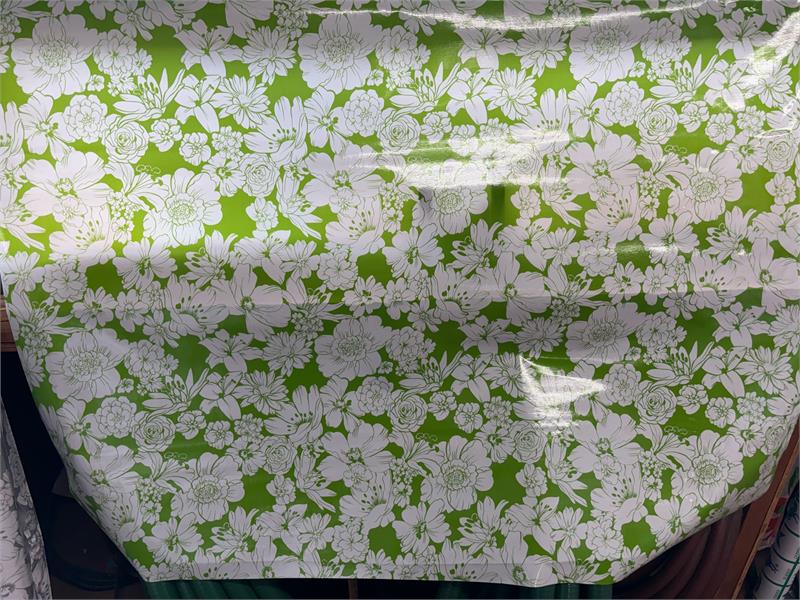 Victoria on Aqua Green Oil Cloth, Full Bolt of 12 Yards. Oilcloth yardage in thoroughly modern and fantastically floral pattern. Gorgeous white blooms on a bold backdrop, this design exquisitely elegant.