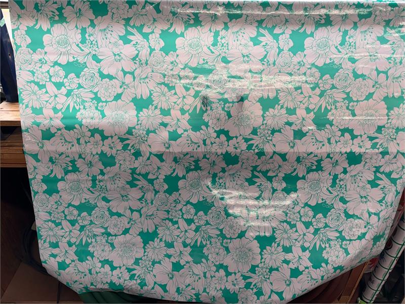 Victoria on Aqua Green Oil Cloth, Full BoltOilcloth has been around for over a century and when it comes to making a bold color statement anywhere in your home. Oilcloth is a long-lasting, sturdy product that comes in vibrant colors. The oilcloth of yesteryear was resin-coated vinyl and the finish sometimes cracked or flaked. The new version is made of hi-tech plastic that won't crack but has the same colorful shine. Oilcloth has a mesh backing, which means it can really hold a stitch. It can be used for anything that needs to be durable and colorful--tablecloths, upholstered dining room chairs, curtains, bibs, lampshades, tissue boxes, outdoor chairs, etc. Your only limited by your imagination! Oil Cloth measures 48" wide & a full bolt equals 12 continuous yards (36 feet) Don't see the pattern or color you want? Please let us know and we will order it for you!