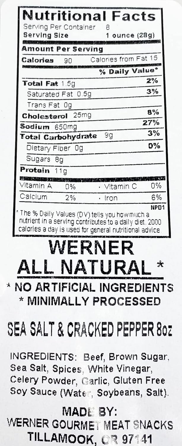 Werner 8 oz. All Natural Sea Salt & Pepper Beef Jerky    |
